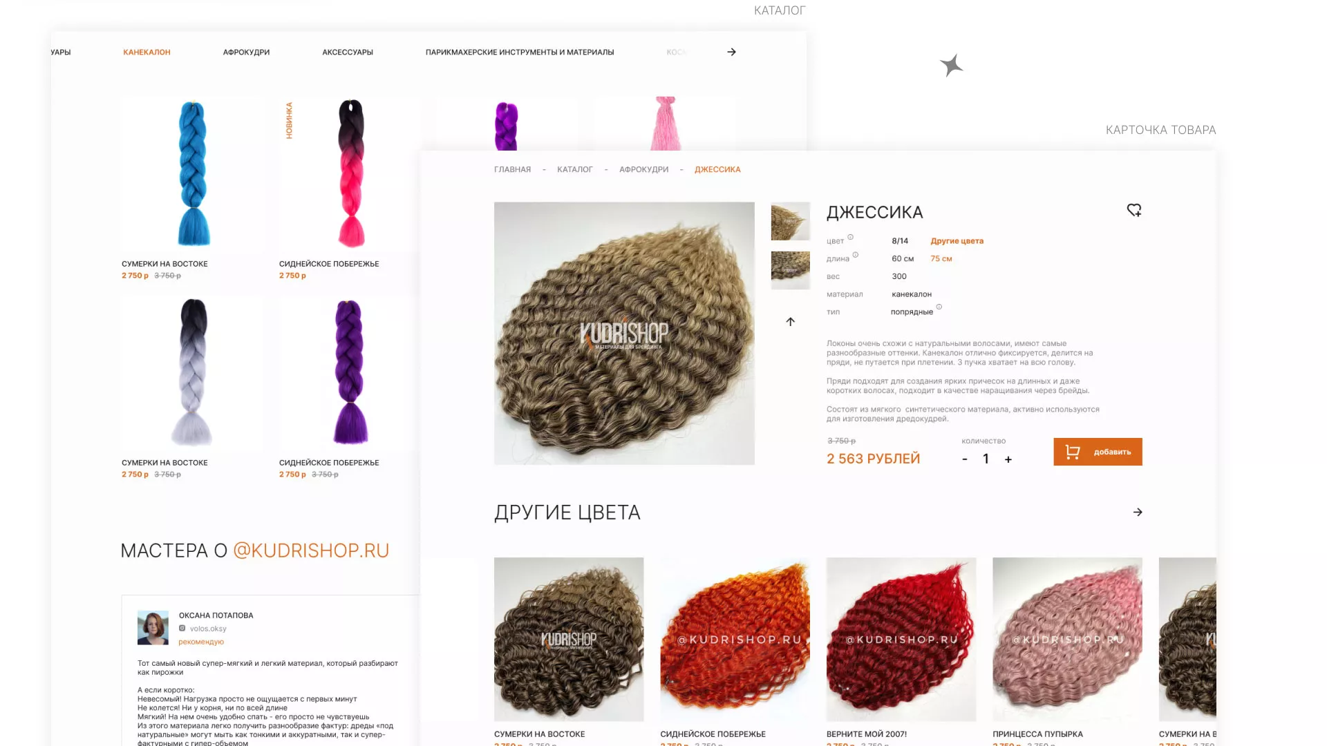 Создание интернет-магазина по продаже афрокудрей и других материалов для брендинга в Назрани. Целевая аудитория — молодые и современные девушки, желающие разнообразить свой образ.